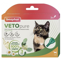VETOPURE - 3 Pipettes Répulsives Antiparasitaires - Pour Chat