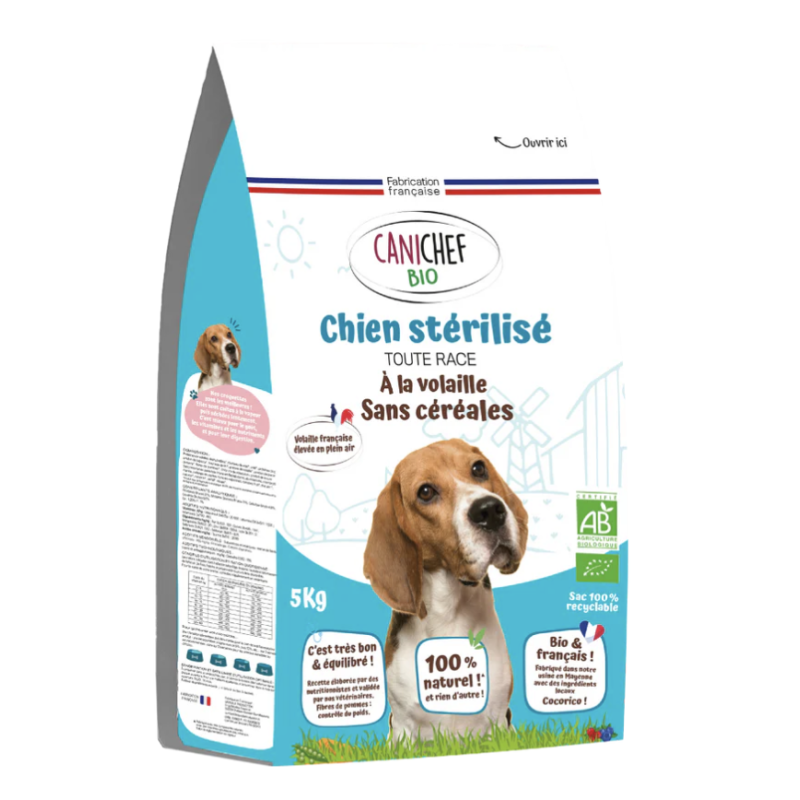 - Croquettes 100 % fabrication française - Ateliers et gammes certifiés BIO par ECOCERT - 90% minimum de matières premières françaises - Volailles fermières bio élevées en plein air dans nos campagnes de l'Ouest Offrez aux chiens de moyenne et grande race le meilleur de la nutrition avec nos croquettes bio à la volaille. Riches en protéines de volaille...