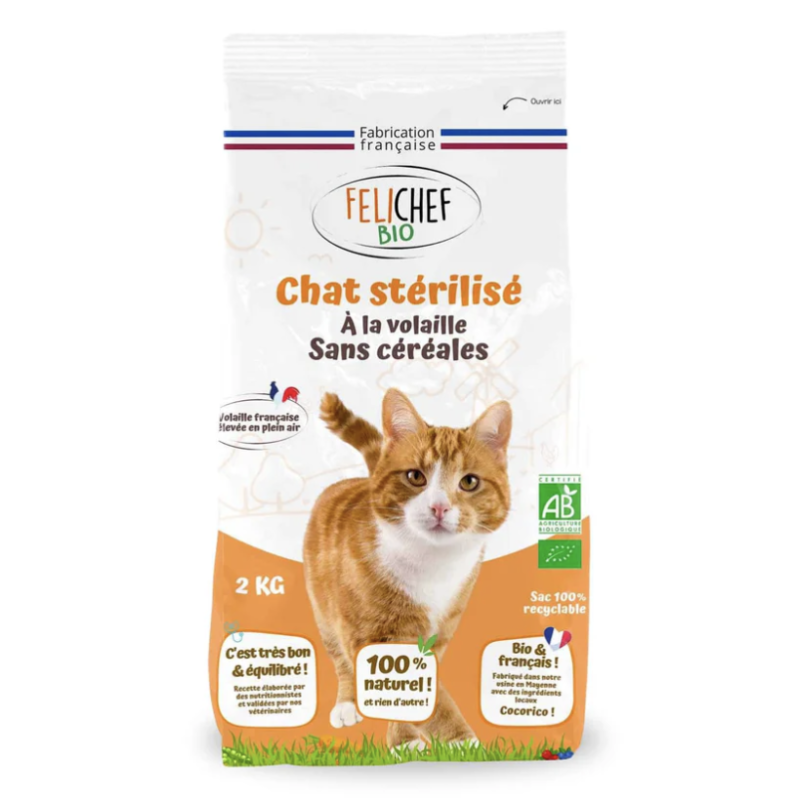 - Croquettes 100 % fabrication française - Ateliers et gammes certifiés BIO par ECOCERT - 90% minimum de matières premières françaises - Volailles fermières bio élevées en plein air dans nos campagnes de l'Ouest Offrez à votre félin préféré une délicieuse recette de croquettes bio pour chat adulte à la volaille française. Riche en protéines et contenant...