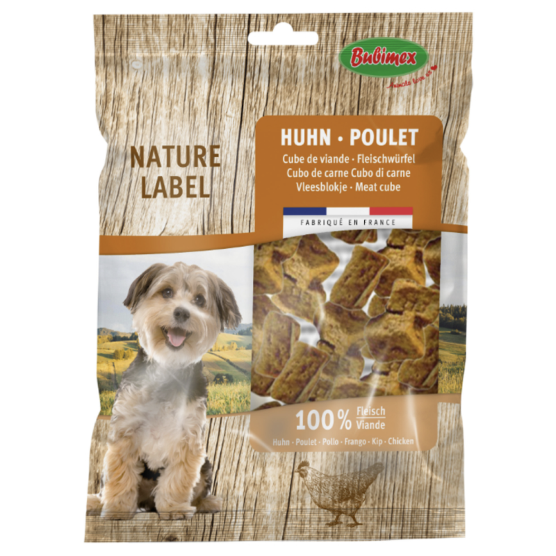 80 gr Friandise pour Chien Récompensez et choyez votre chien avec les cubes de bœuf BUBIMEX. Fabriquées à partir de viande de bœuf extra tendre, sans colorants artificiels ni exhausteurs de goût.