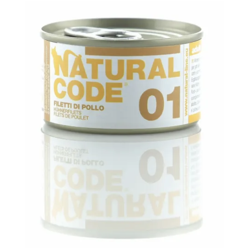 Filets composés uniquement de poulet provenant d'élevages contrôlés en plein air. Le poulet est une viande extrêmement digeste et assure au chat un apport en protéines de haute valeur biologique. Un faible pourcentage de riz, autre aliment très digeste et source d'énergie, est ajouté au poulet.